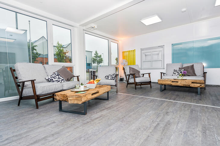 ELA units voldoen aan alle eisen aan verblijfsruimtes: flexibele ruimteafmetingen, binnenwerkse hoogtes van maximaal 2,75 meter en veel daglicht dankzij grote raamoppervlakken maken van de huurunits van ELA Container ideale verblijfsruimtes.