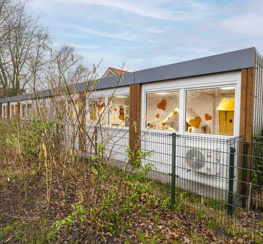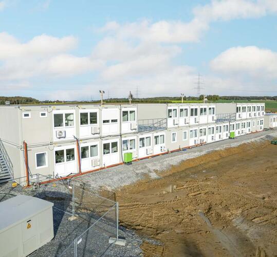 Mobiele werkplaatsaccommodatie huren: 30 of 45 m², optioneel met werkbank.